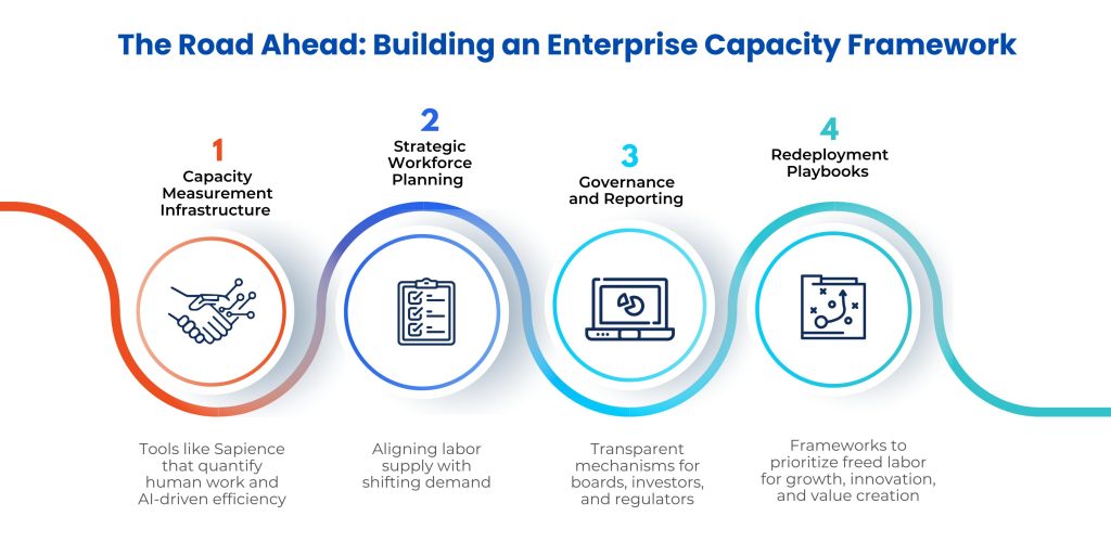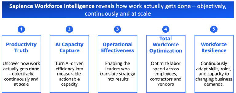 Sapience ensures boards and executives have an objective, auditable view of labor capacity, effectively acting as the governance layer for AI workforce transformation. AI alone is insufficient. Measurement and redeployment of labor capacity are essential, and Sapience provides the platform and discipline to make this possible.